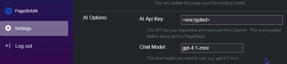 We use a Bring Your Own Key (BYOK) system, where you request an API key from OpenAI and save it in PageBlaze Settings: