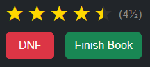 Enter a star rating at any time. Click "Finish Book" to set the progress to 100% (and move the book to the Finished collection) or, if you just can't get over the line, click "DNF" to send the book to the Did Not Finish collection: