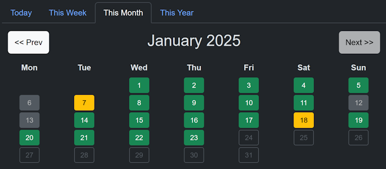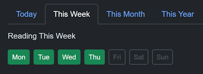 This Week shows your color-coded reading progress for the current week...
